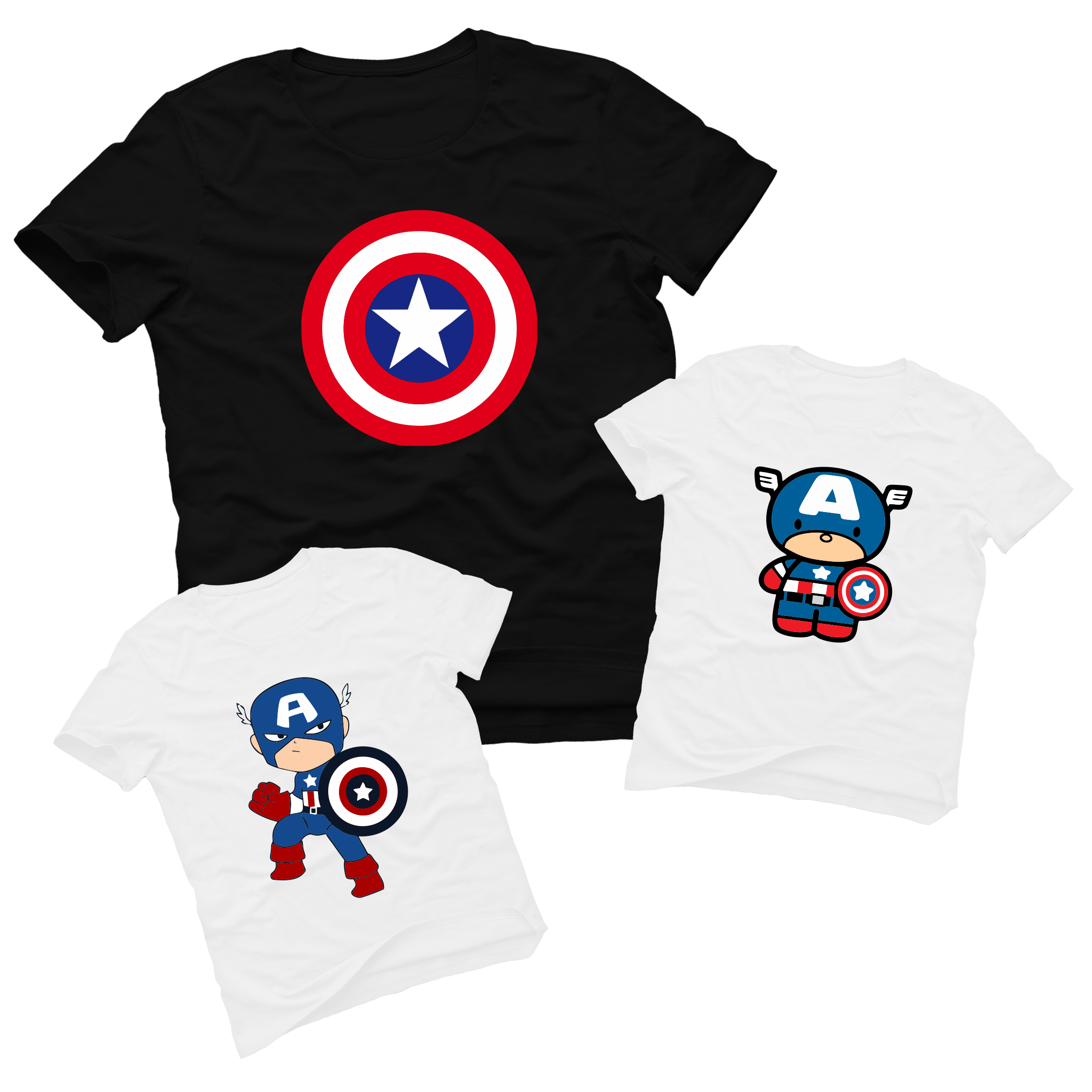 Combo de 3 remeras Papá Capitán América. Consultanos en caso de querer llevar más o menos remeras de niños o sumar otra de adulto.